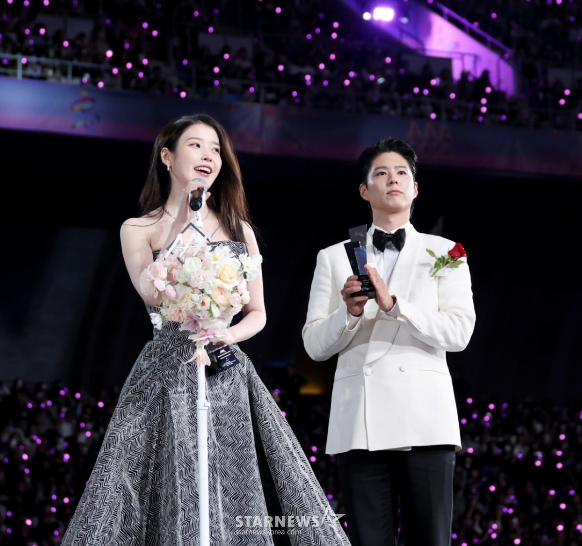 '폭싹 속았수다' 아이유와 박보검이 '10주년 AAA 2025'에서 유쾌한 입담을 발휘했다.6일 오후 가오슝 내셔널 스타디움에서 '10주년 아시아 아티스트 어워즈 2025'(10th Anniversary Asia Artist Awards 2025, 이하 'AAA 2025')가 개최됐다. 시상식 사회는 이준호와 장원영이 맡았다.
