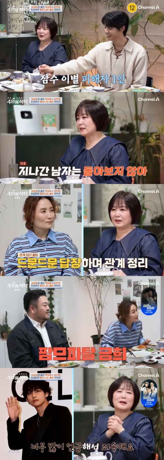 아나운서 이금희가 최악의 연애사를 털어놨다. 8일 방송된 채널A 예능 프로그램 '절친 도큐멘터리 4인용식탁'에는 아나운서 이금희가 절친인 박상영 작가, 가수 겸 배우 이진혁을 초대해 진솔한 대화를 나눴다.