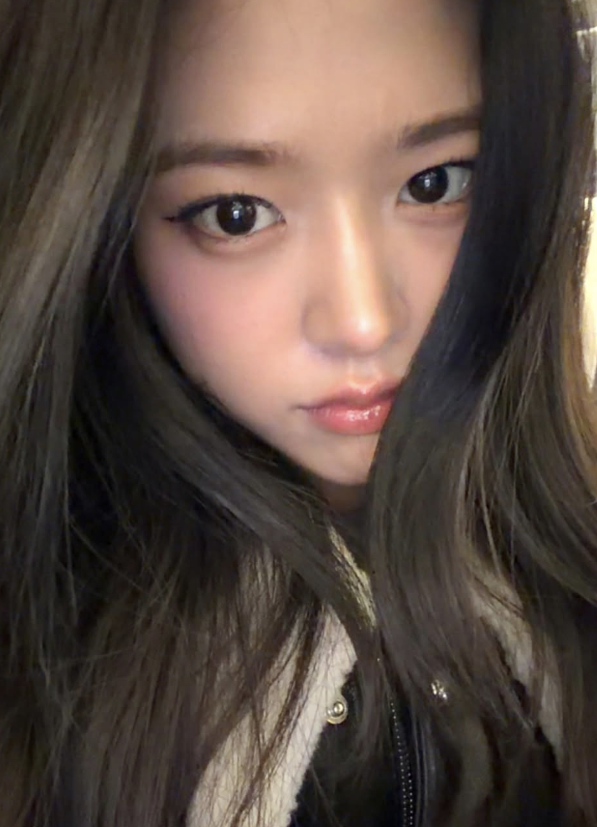 공개된 사진 속 안유진은 손으로 턱을 괸 채 게슴츠레한 눈빛으로 카메라를 응시하고 있다. 머리를 자연스럽게 풀어헤친 상태에서 촬영된 초근접 셀카임에도 잡티 없는 피부와 또렷한 이목구비가 고스란히 드러나 눈길을 끌었다.