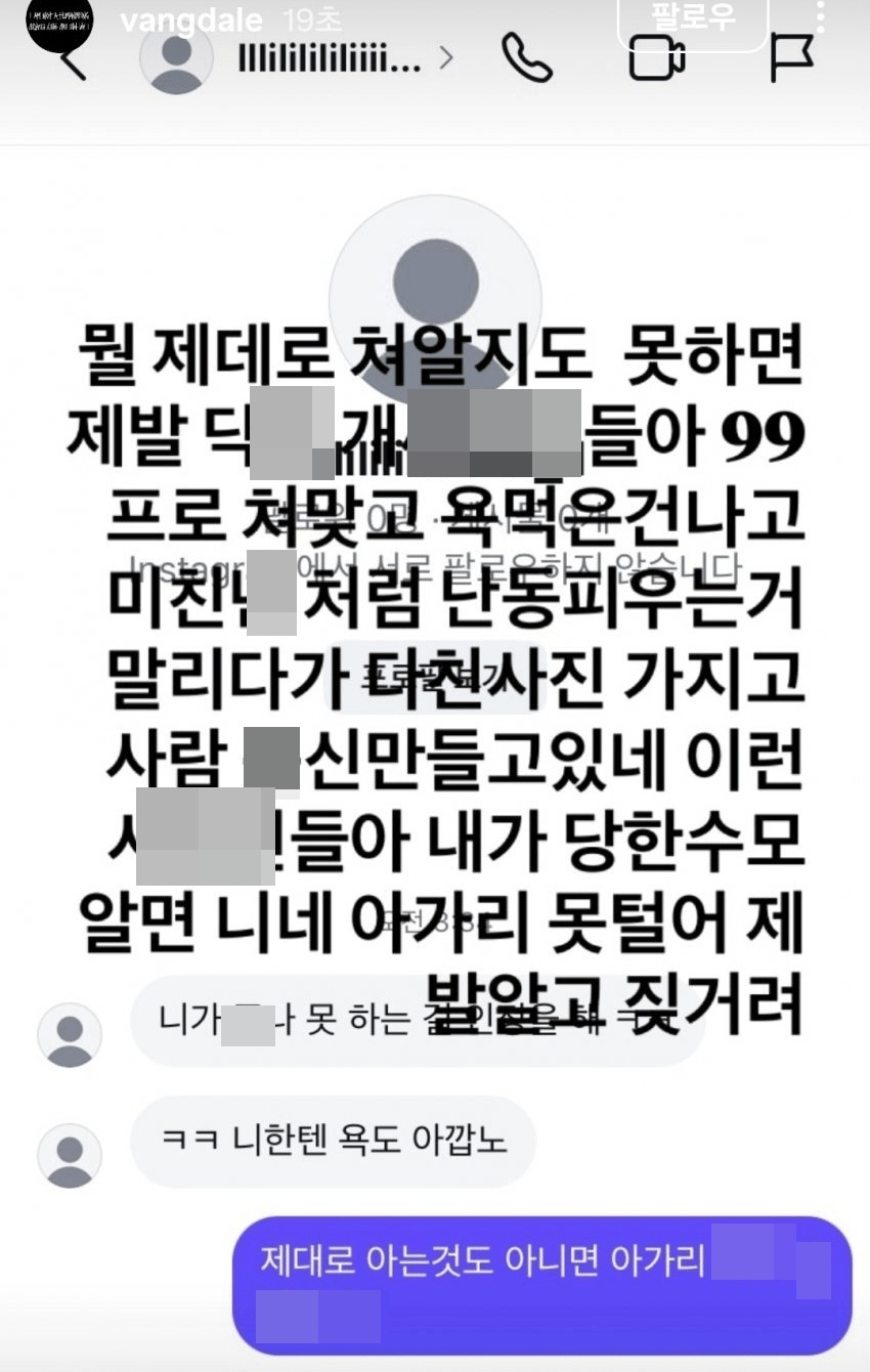 방달은 재키와이의 '데이트 폭행' 주장에 "뭘 제대로 알지도 못하면 닥쳐. XXX들아. 99% 처맞고 욕먹은 건 나고 XXX처럼 난동 피우는 거 말리다가 다친 사진 가지고 사람 XX 만들고 있네. 이런 XXX들아. 내가 당한 수모 알면 너네 아가리 못 털어. 제발 알고 지껄여"라고 욕설을 퍼부었다.