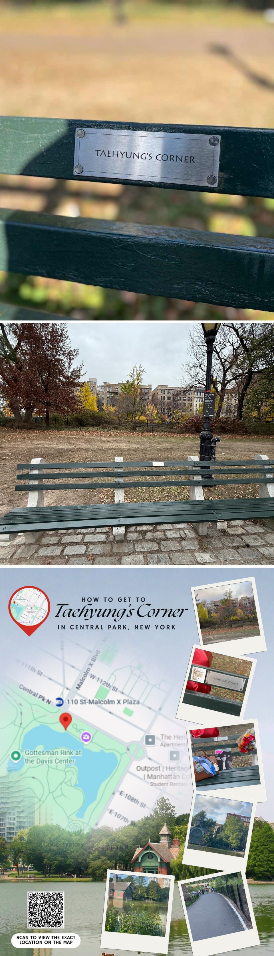 방탄소년단(BTS) 뷔의 미국팬들이 뷔의 생일을 축하하며 뉴욕 센트럴파크에 뷔의 벤치를 조성했다.
