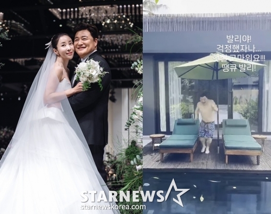 지난 11월 30일 방송인 출신 필라테스 강사 원진서와 결혼한 윤정수는 최근 인도네시아 발리로 신혼여행을 떠났다. 윤정수는 "발리야 걱정했잖아. 햇살 고마워요. 땡큐 발리"라며 기쁨을 드러냈다.