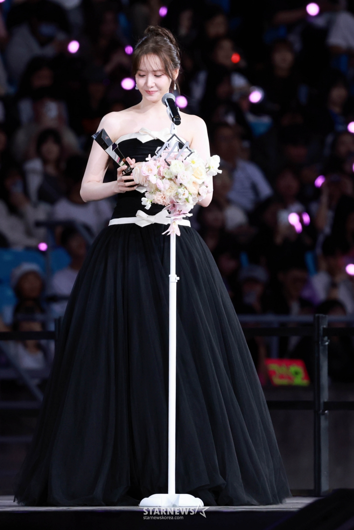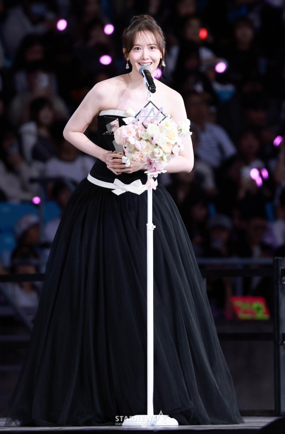배우 임윤아가 6일 대만 가오슝 내셔널 스타디움에서 진행된 스타뉴스 주최 '10주년 아시아 아티스트 어워즈 2025(10th Anniversary Asia Artist Awards 2025, '10주년 AAA 2025')에서 AAA Best Artist상을 받고 수상소감을 말하고 있다.