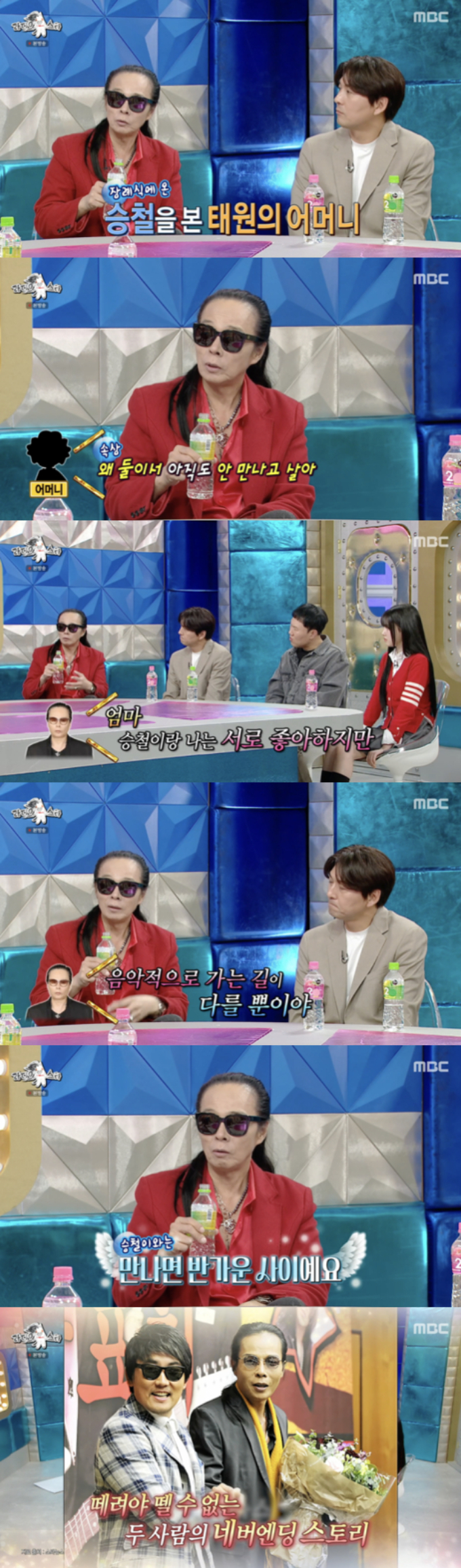 이어 그는 이승철의 말을 직접 전했다. "형 아버지가 우리를 다시 만나게 해준 것 같아"라는 말에, 김태원은 "네 어머니가 우리 만나게 해준 것"이라고 답했다고 밝혀 깊은 여운을 남겼다.또한 김태원은 어머니의 반응도 전했다. 그는 "이승철을 본 우리 어머니가 '왜 둘이서 아직도 안 만나고 사냐'라고 하더라"라며, 이에 대해 "'엄마 승철이랑 나는 서로 좋아하는데 음악적으로 가는 길이 다를 뿐이야. 만나면 반가운 사이다'라고 했다"라고 말해 두 사람의 관계를 설명했다.