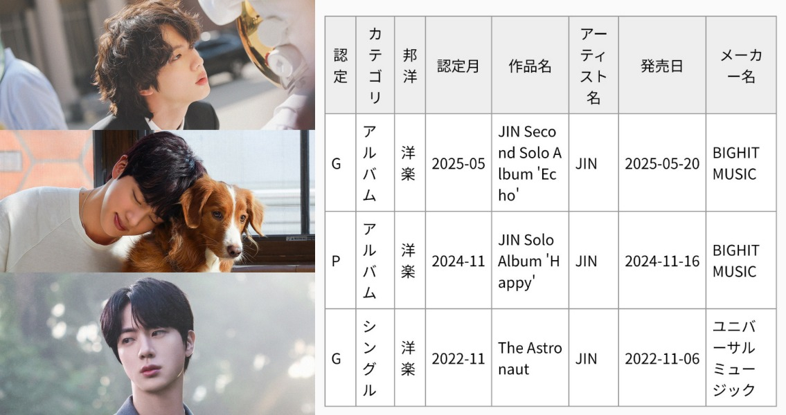 'HAPPY' 앨범 역시 일본 시장에서 뜨거운 반응을 얻었다. 일본 레코드협회는 지난 12월 10일, 'HAPPY'가 11월 기준 누적 출하량 25만장을 넘겨 골드 디스크 '플래티넘' 인증을 획득했다고 발표했다. 이는 진의 솔로 활동 최초 '플래티넘' 인증으로, 'The Astronaut'의 '골드' 인증을 뛰어넘는 성과다.