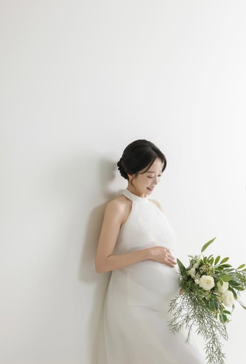 또 다른 사진에서 박은영은 흰색 드레스를 입고 볼록 나온 배를 바라보며 지그시 미소 짓고 있다. 사진을 본 개그우먼 홍현희는 "웨딩 화보 아닌가요"라는 반응을 보였다. 가수 나비도 "산모가 이렇게 예쁘면 반칙"이라며 박은영의 외모를 칭찬했다.