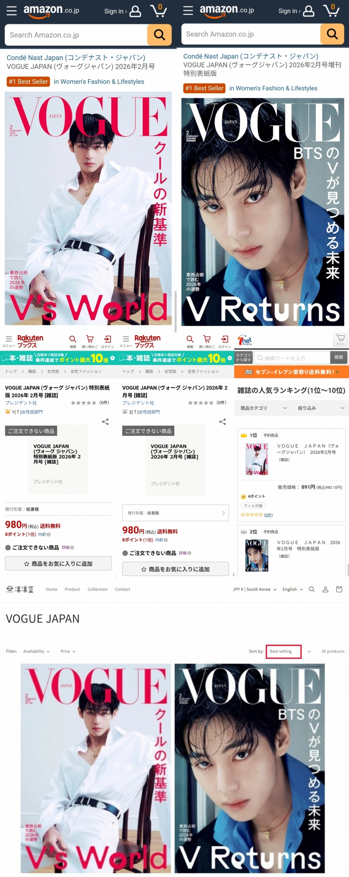 '보그 재팬'은 24일부터 예약판매에 돌입했다. 예약판매임에도 불구하고 예약 첫날인 24일부터 일본 온라인판매처에는 베스트셀러는 물론 품절을 기록해 놀라움을 안겼다.