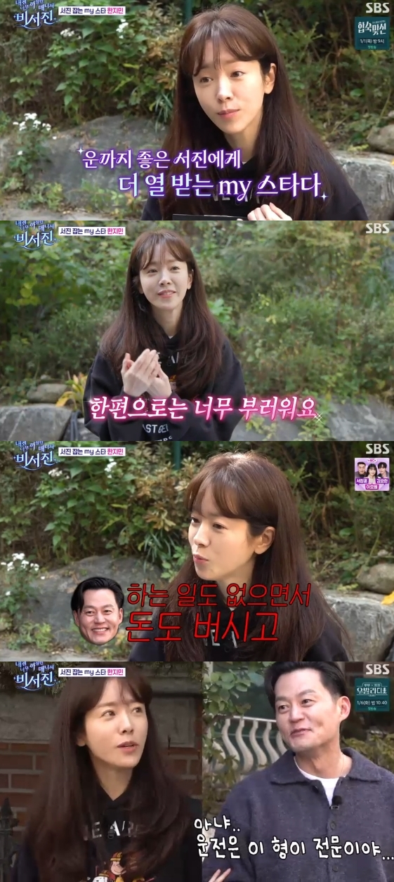 배우 한지민이 이서진을 보며 이를 갈았다. 26일 방송된 SBS 예능 프로그램 '내겐 너무 까칠한 매니저-비서진'에는 열두 번째 'my 스타'로 한지민이 출연해 '예능 원수' 이서진을 상대로 복수전을 펼쳤다.