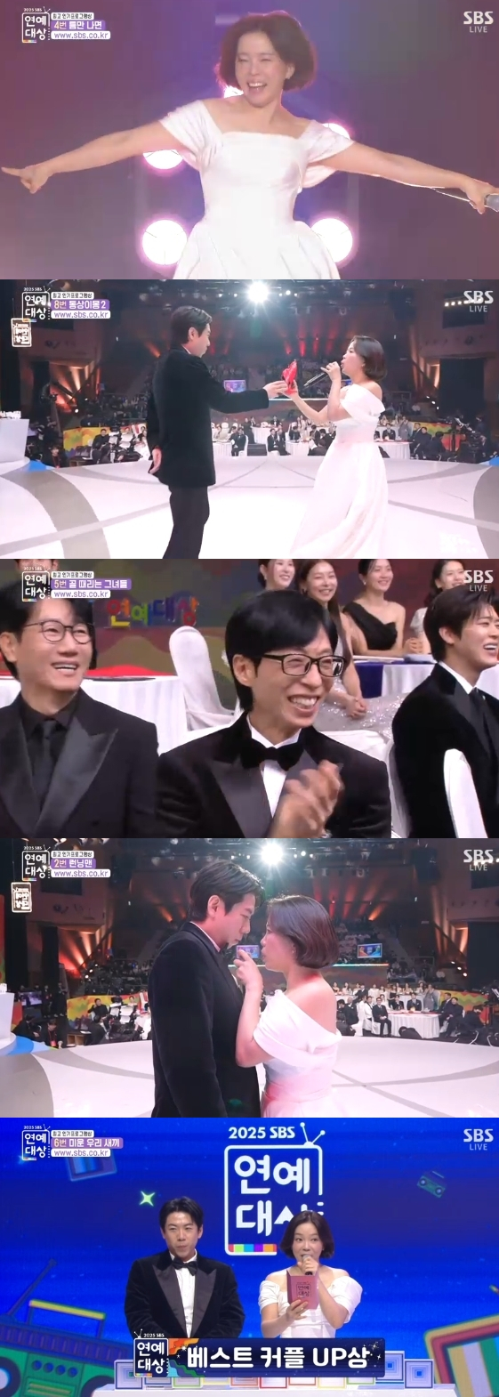 배우 정이랑과 개그맨 양세찬이 핑크빛 퍼포먼스를 선보였다. 30일 서울 마포구 상암동 SBS 프리즘타워에서 생방송으로 열린 '2025 SBS 연예대상'에서는 전현무, 이수지, 차태현이 MC로 호흡을 맞춘 가운데 다채로운 시상이 이어졌다.