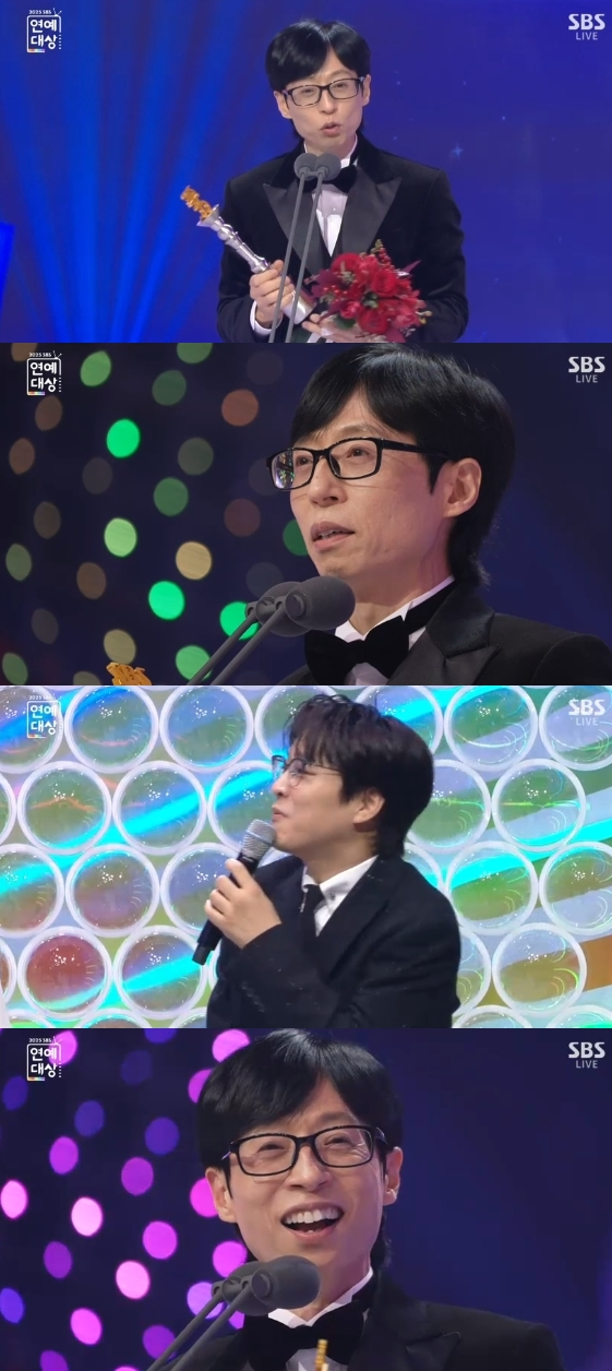 유재석은 "깜짝 놀랐다. 계속해서 연예대상에 오지만 SBS 얼굴상을 받게 될 줄은 몰랐다. 제가 900분이 넘게 나온 줄 몰랐다"며 고개를 숙였다.