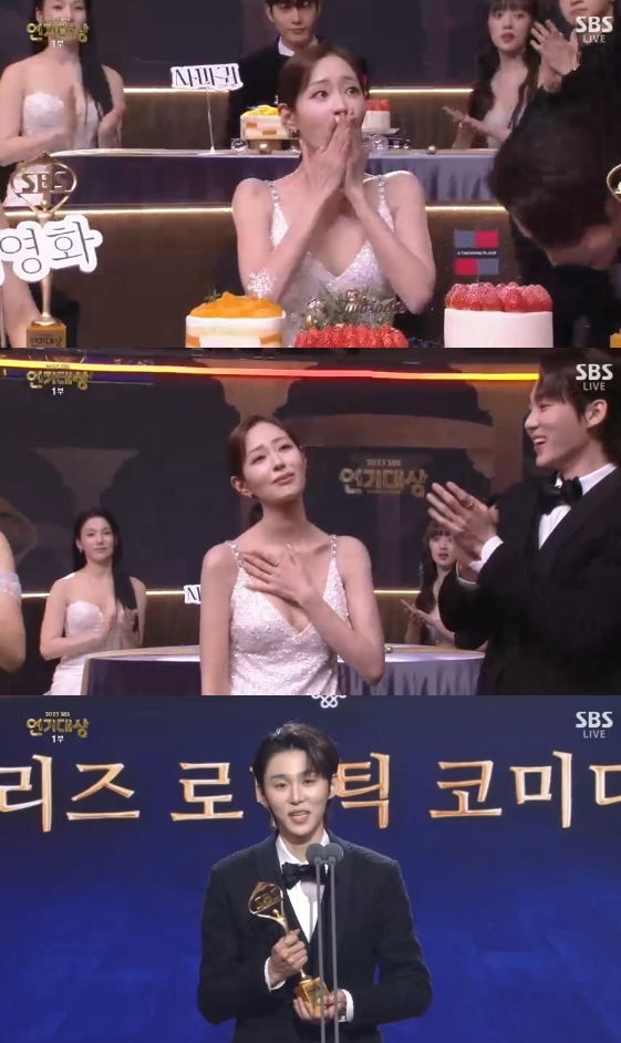 이날 남자 수상자로 무대에 오른 서범준은 "오늘 신인상 시상하고 '우주메리미' 식구들 보러왔다. 작년에 이 자리에서 신인상 받고 또 언제 설 수 있나 생각했는데 이 자리에 다시 설 수 있게 돼서 진심으로 감사드린다. 정말 예상을 못 했다. 아직 많이 부족하지만, 하루하루 최선을 다해 겸손한 모습으로 초심을 잃지 않는 배우가 되겠다"라고 다짐했다.