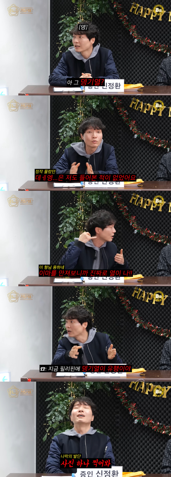 이날 MC들은 신정환에게 "뎅기열은 누구 아이디어냐"고 물었다.