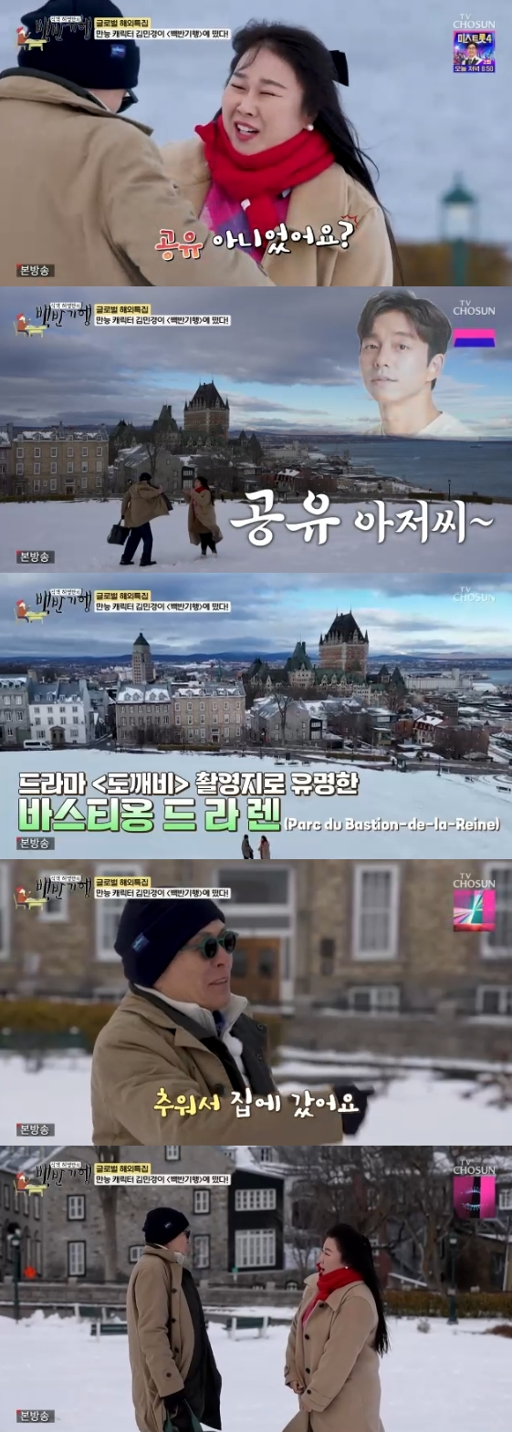 개그우먼 김민경이 캐나다에서 배우 공유를 찾아 헤맸다.4일 방송된 TV 조선 예능 프로그램 '식객 허영만의 백반 기행'에는 캐나다 퀘백시티로 미식 여행을 떠난 허영만, 김민경의 모습이 그려졌다.
