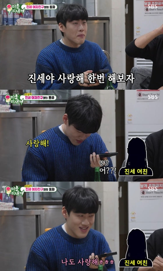 이날 조진세는 '사랑해'라는 말을 듣는 게임으로 여자친구에게 전화를 걸었다.