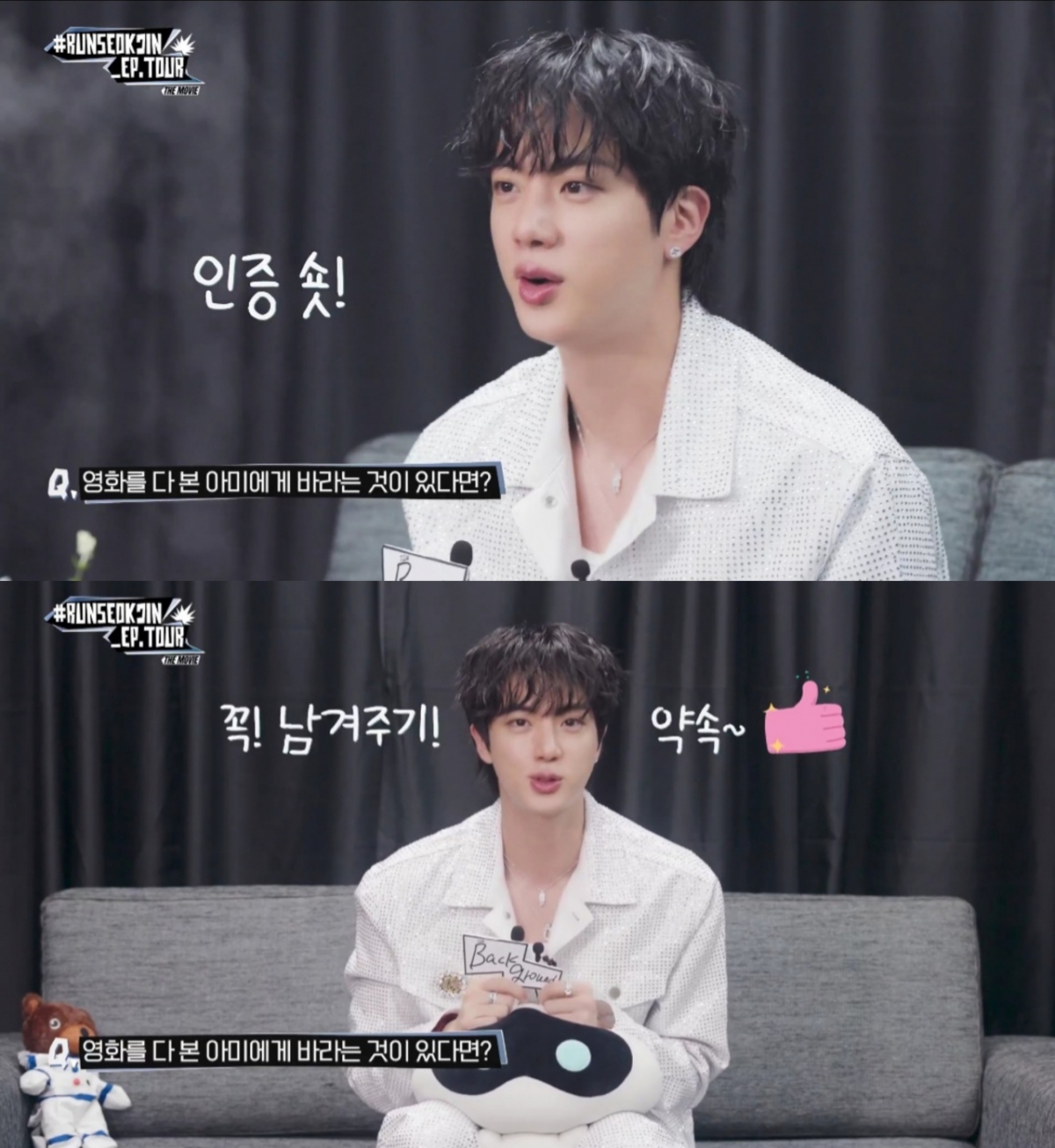 한편, 지난해 6월 고양에서 열린 팬 콘서트 '#RUNSEOKJIN_EP.TOUR in GOYANG'의 현장을 담은 영화 '#RUNSEOKJIN_EP.TOUR THE MOVIE'는 2025년 12월 27일 전 세계 개봉했다. 국내에서는 12월 31일부터 CGV 단독 상영 중이며, 일반관을 비롯해 4DX, ScreenX, Ultra 4DX 등 다양한 포맷으로 상영되며 개봉 이후에도 뜨거운 반응 속에 관람 인증샷과 후기가 확산되며 화제성을 이어가고 있다.