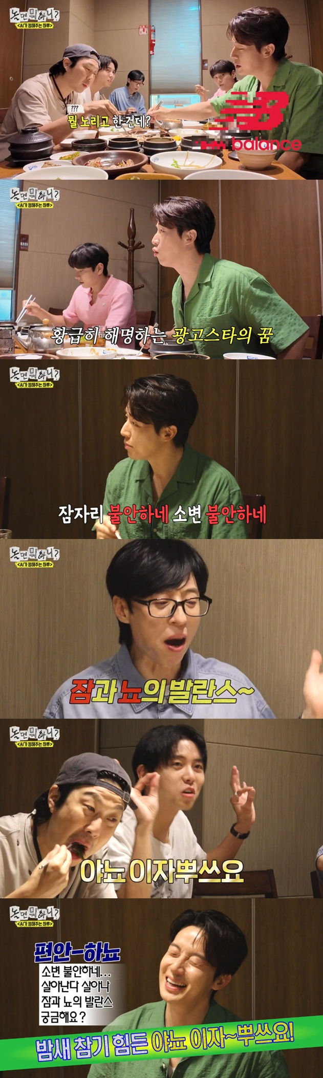 허경환은 그해 8월 'AI가 정해주는 하루' 특집에서 40대 독거남으로 등장, 카페 블라인더에 토크가 묻히는가 하면, 그의 유행어 "하고 있는데~", "언발란~스", "불안하네~", "살아난다 살아나", "궁금해요?", "이자~뿌쓰요", "바로 이 맛 아닙니까~" 등이 적재적소에 남발해 멤버들의 분위기도 살아났다.