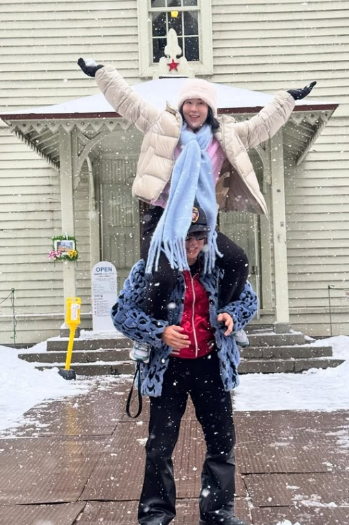 공개된 사진에는 다나카와 함께 홋카이도 여행을 즐긴 사유리의 모습이 담겨 있다. 다나카는 개그맨 김경욱이 연기하는 일본인 캐릭터다. 사진에서 사유리는 다나카와 맛있는 식사를 즐기고, 다나카의 목말을 타는 등 겨울 홋카이도 여행을 만끽하고 있다.