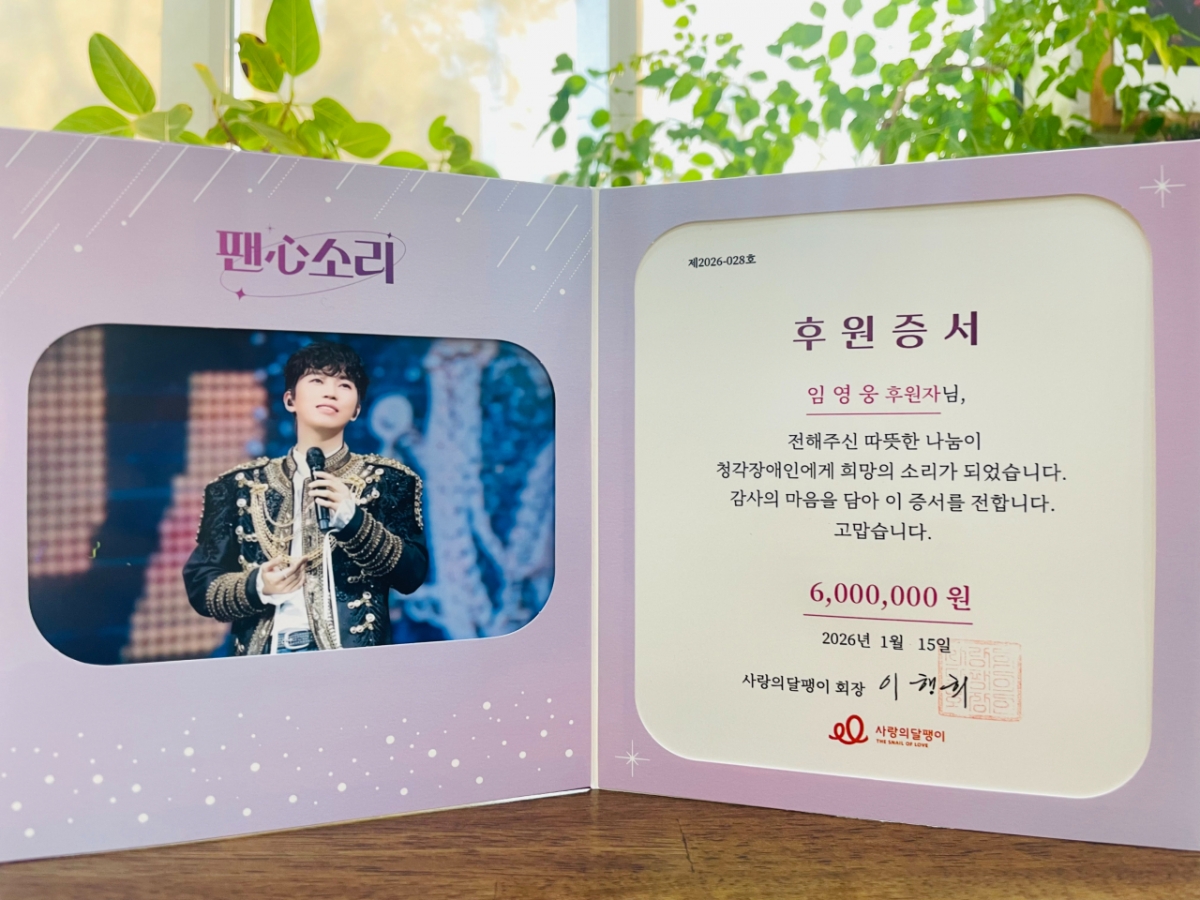 가수 임영웅 팬클럽 '잠실웅바라기스쿨' 회원들이 청각장애인을 지원하는 사단법인 '사랑의 달팽이'에 600만원을 기부했다.이번 기부는 임영웅의 2026년 전국투어콘서트 'IM HERO'가 열리고 있는 기간에 이뤄져 뜻깊은 의미를 더했다.