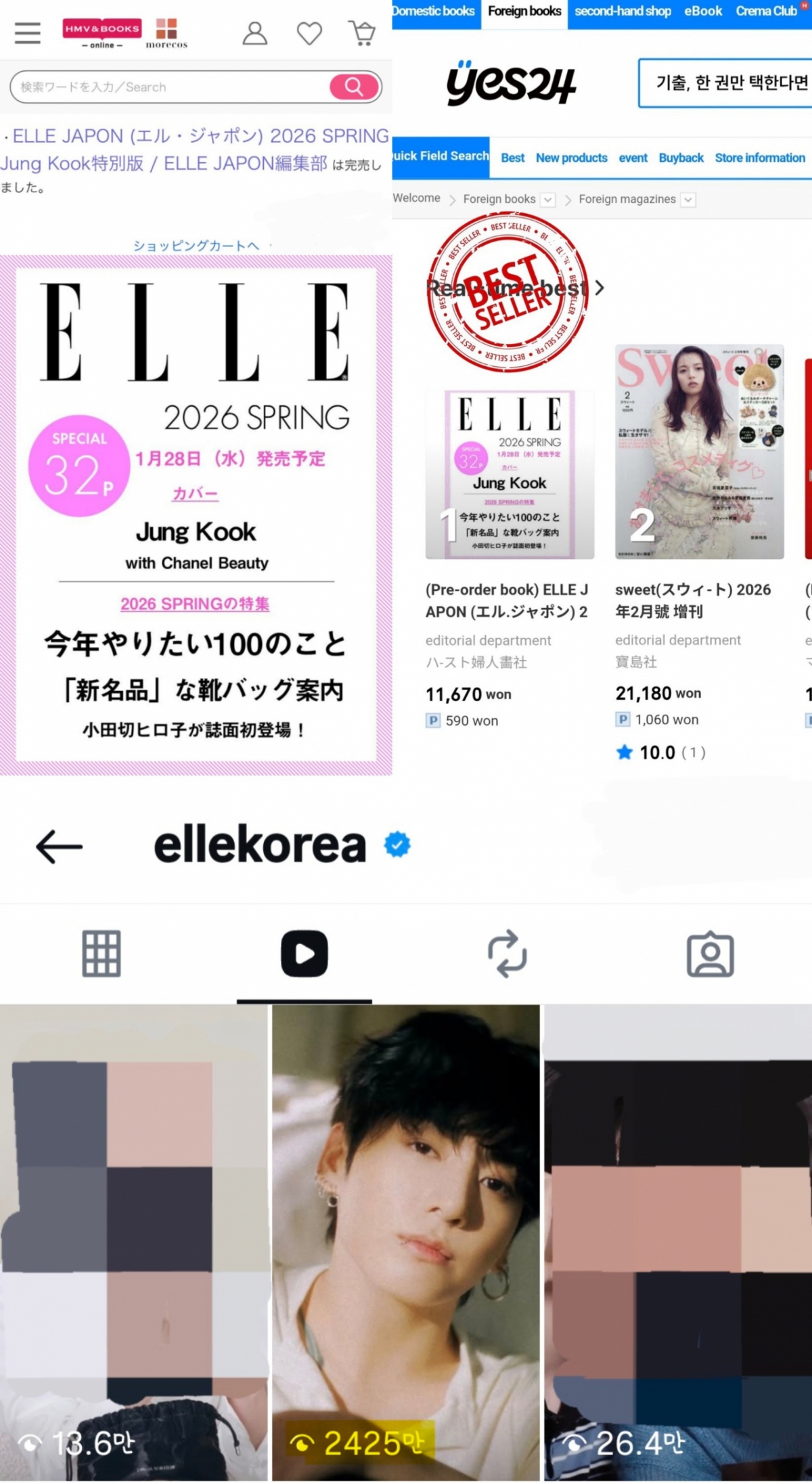 1월 28일 발매될 엘르 재팬 2026년 봄 스페셜 에디션 잡지는 정국이 커버를 장식했다. 특별하고 다채로운 정국이 매력이 총 32페이지에 걸쳐 담길 예정이다.