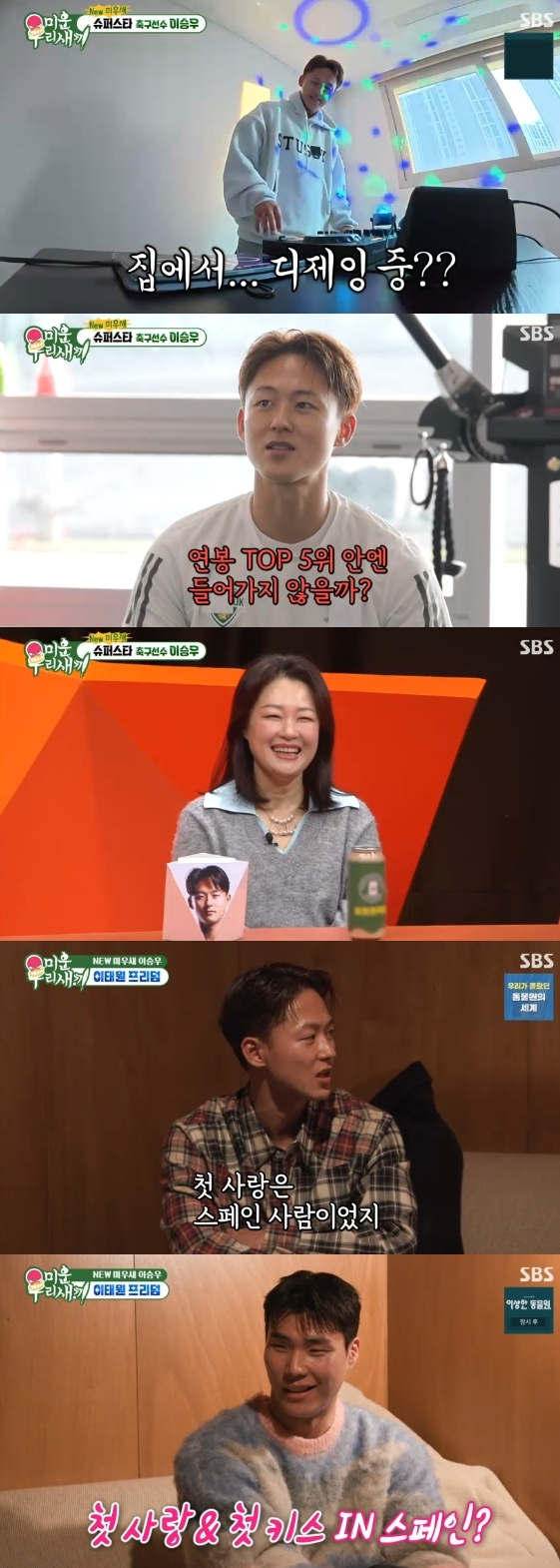 이승우는 또 첫사랑을 묻는 송범근에게 "첫사랑은 스페인에서 시작됐다"라고 답했다. 첫 키스에 대해서도 "다 스페인이다"라고 말한 뒤 "갑자기 목이 탄다"라고 말을 돌려 웃음을 자아냈다.