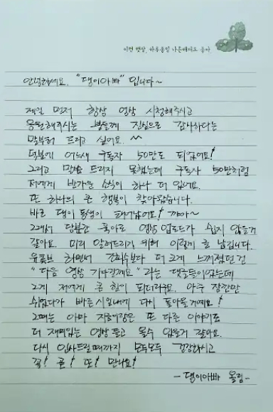 이어 '저에게 반가운 소식이 하나 더 있다. 또 하나의 큰 행복이 찾아왔다. 바로 댕이 동생이 태어났다. 그래서 당분간 육아로 영상 업로드가 쉽지 않을 것 같다. 미리 알려드리기 위해 이렇게 글 남긴다'고 전했다.