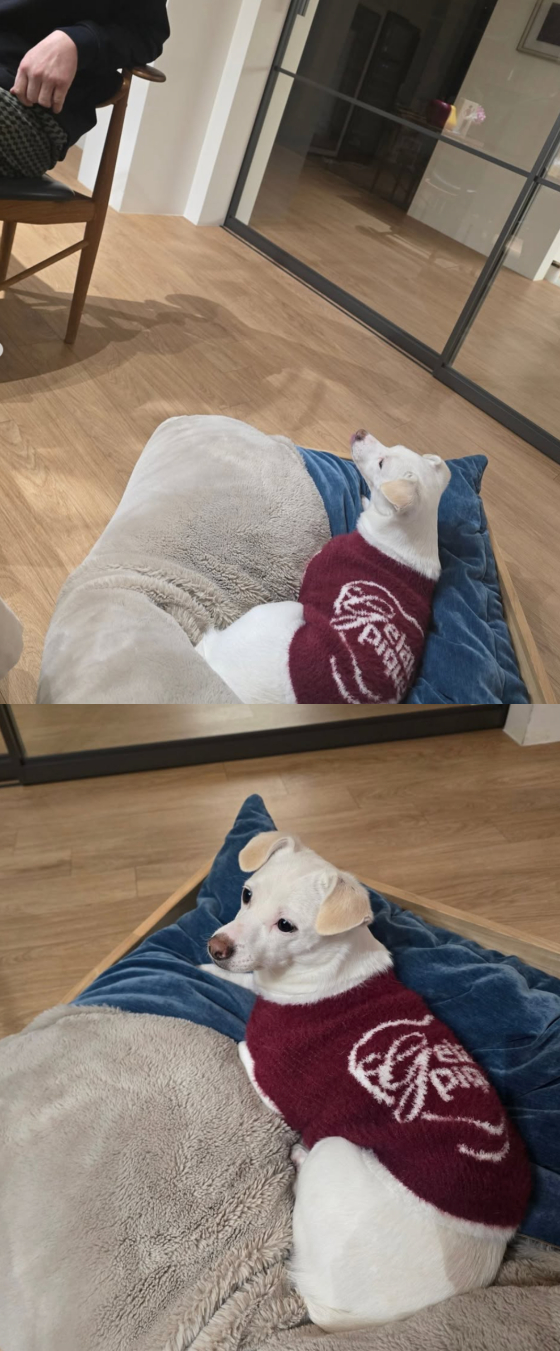 방송인 신동엽이 막내 크림이를 위해 몸소 움직였다.최근 신동엽 아내 선혜윤 PD는 반려견 크림이 SNS에 "아빠(신동엽) 옆에 꼭 붙어 있고는 싶은데 자기 침대에도 눕고 싶어서 거실과 주방을 계속 왔다 갔다 하며 안절부절 못하는 크림이를 위해 아빠가 침대를 번쩍 들어다가 식탁 아빠 자리 옆에 갖다 줬더니 저러고 앉아서 아빠 바라기하고 있다"는 글과 함께 사진 여러 장을 게재했다.