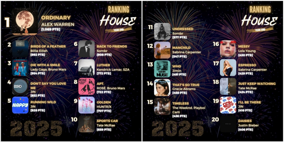 진은 멕시코 No.1 온라인 팝 음악 방송국 'House Radio(하우스 라디오)'에서 '2025 K-POP 아티스트'로 선정되며 2년 연속 영예를 안았다.