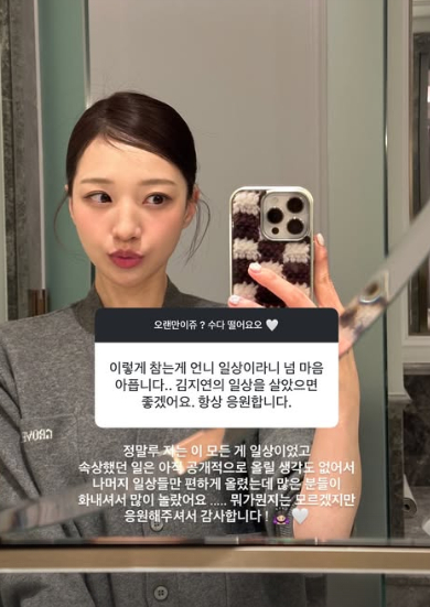 김지연은 24일 팬들과 무물 타임으로 소통하며 정철원과의 이혼 및 파경을 암시하는 듯한 대답으로 시선을 모았다.