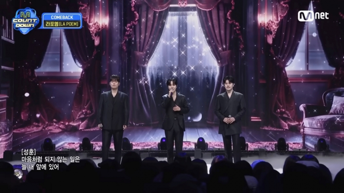 1년 9개월 만의 신곡으로 음악방송 무대에 오른 라포엠은 웅장한 사운드 위에 쌓아 올린 조화로운 하모니와 섬세한 감정선으로 매 무대마다 몰입감을 끌어올렸다. 세 멤버의 보컬이 어우러지며 완성되는 폭발적인 사운드는 깊은 감동과 여운을 선사하며 크로스오버 그룹으로서 라포엠의 정체성을 다시 한번 각인시켰다.