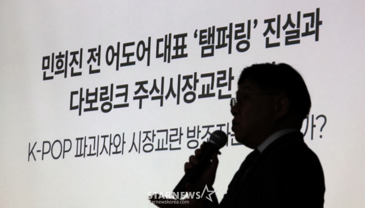 28일 오전 서울 종로구 관철동 교원종각빌딩 챌린지홀에서 '뉴진스 탬퍼링' 의혹에 관한 공개 기자회견이 개최됐다. 법무법인 지암 김선웅 변호사가 참석했다.