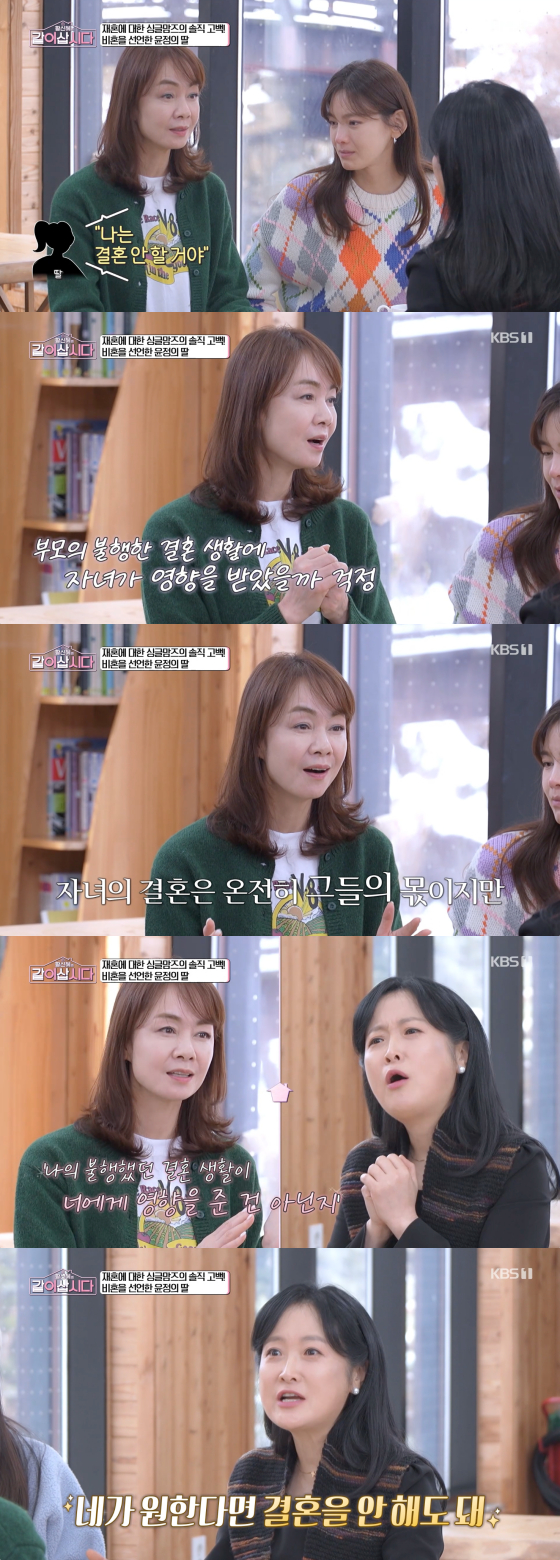 그러면서 "두 가지를 전부 말해주면 좋다. '네가 원하는 삶이라면 결혼 안 해도 된다. 그런데 한 가지는 걱정이 된다. 결혼 생활이 행복하지 않은 엄마를 보며 그런 생각을 가진 건지 미안한 마음이 든다 둘 중에 뭐냐'고 물어보면 되는 것"이라고 설명했다.