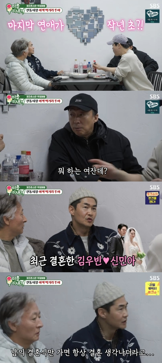 이때 김종수는 "가정을 이루고 싶은 생각이 있느냐"며 배정남의 결혼 계획을 물어 시선을 모았다. 이에 배정남은 김우빈, 신민아 커플을 언급하며 "얼마 전에 우빈이 결혼식에 다녀왔는데 결혼하고 싶더라. 남의 결혼식만 가면 항상 결혼 생각이 난다"라고 묘한 심정을 고백했다.
