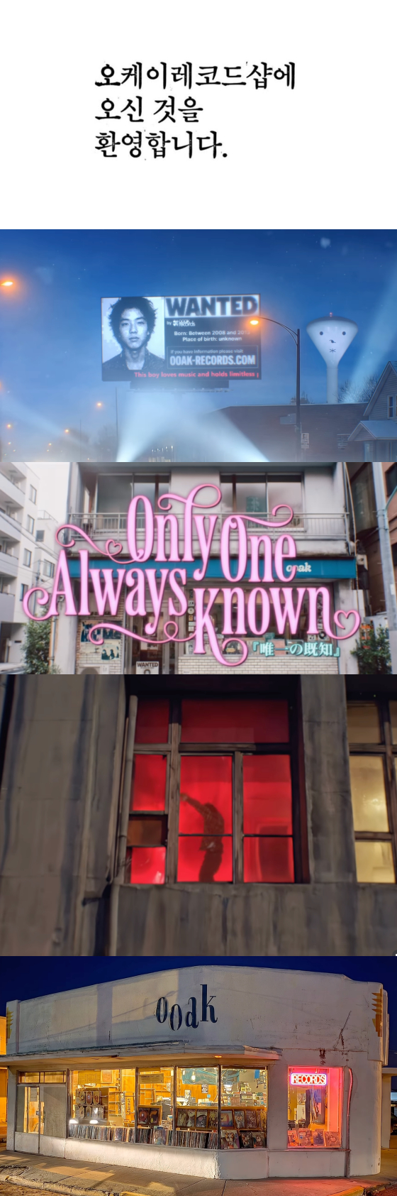 오케이레코즈를 다양하게 시각화한 콘텐츠들도 선보였다. 한 영상에서는 '원티드'(WANTED)라는 글귀와 함께 한 남성의 얼굴, 오케이레코즈 홈페이지 주소, 2008년부터 2013년 사이 출생한 남성을 찾는다는 내용의 광고판이 담겼다.또한, 한 인물이 빨간 조명 속에서 자유롭게 춤을 추다가 카메라가 점점 뒤로 빠지면 건물 내 많은 이들이 각자의 공간에서 춤을 추는 모습의 영상 콘텐츠도 공개됐다.