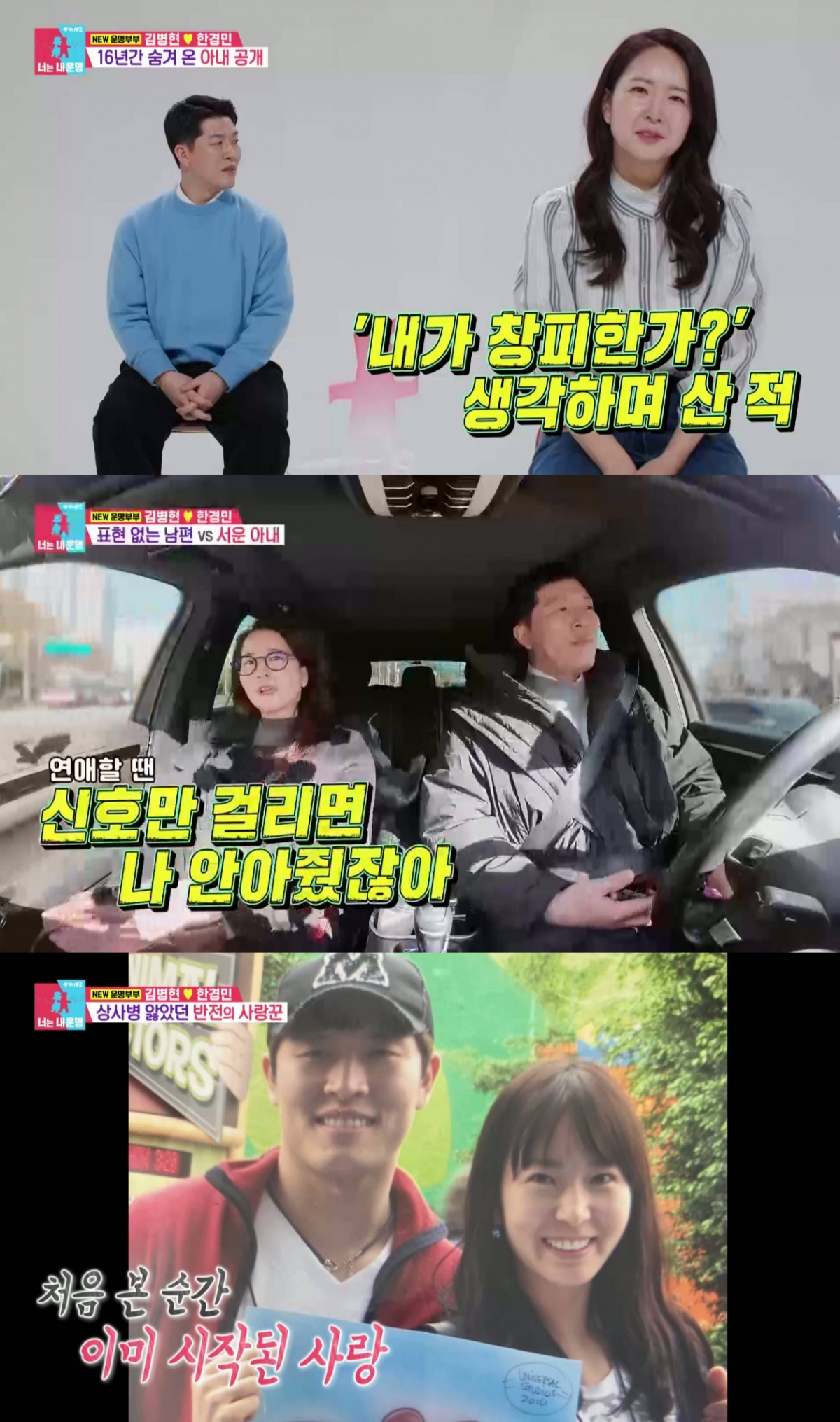 또한 한경민은 "연애할 때 신호만 걸리면 안전벨트 풀고 나 안아줬잖아"라고 했지만, 김병현은 쑥스러운 듯 모르쇠로 일관했다.