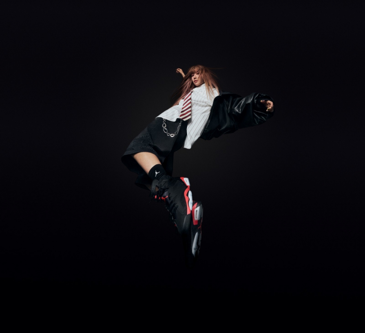 공개된 사진 속 바다는 역동적인 동작과 포스 넘치는 비주얼로 강렬한 카리스마를 발산했다. 로우 앵글로 담긴 컷에서는 점프하는 순간의 에너지가 극대화되며 자연스럽게 어우러진 에어 조던 6 레트로 인프라레드 세일즈맨(Infrared Salesman)이 눈길을 끈다.