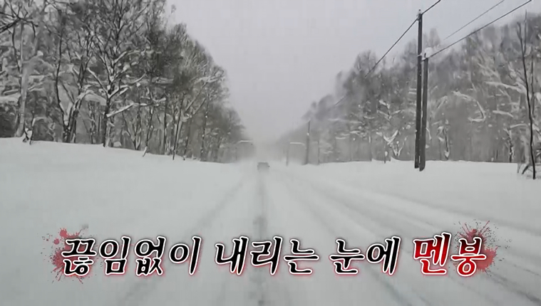 하지만 김준호는 "내가 생각한 주먹밥과는 좀 다르네"라며 아쉬워한다. 홍인규도 "예전엔 이런 거 살 때 세윤이가 번역기 돌려서 검색하고 (무슨 맛인지) 설명해줬는데"라고 떠올리며 "(연예대상에서) 상 받더니 변했다"고 몰아세운다. 김준호는 "맞다. 떴다고 저런다. 매너리즘에 빠진 거지"라고 맞장구쳐 모두를 폭소케 한다.그러던 중, 파랗던 하늘은 어두워지고 잔뜩 쌓인 눈들로 인해 도로는 차선조차 보이지 않는다. 급기야 눈발이 흩날리자, 김준호는 "아까는 예쁘게 보였던 눈이 이젠 무섭다"며 덜덜 떨다. 김대희는 "나 내릴래, 그냥 내리고 싶다"며 질끈 눈을 감는다.