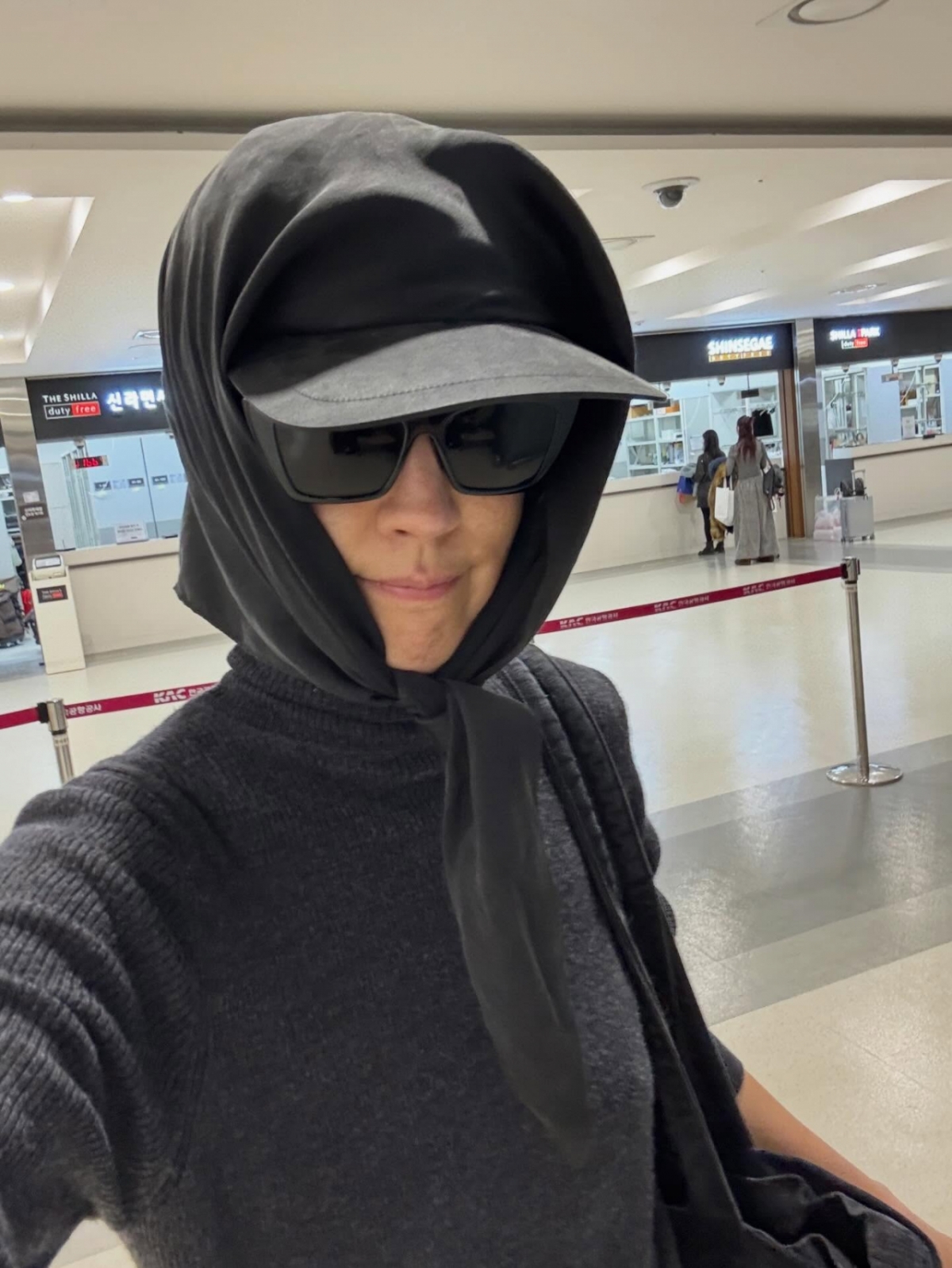 사진에서 홍진경은 스카프와 선글라스로 얼굴을 가리고 혼자 공항에 나선 모습이었다. 비행기에 탄 그는 자기 계발서인 모건 하우절의 '불변의 법칙'을 읽으려는 모습을 보였다.
