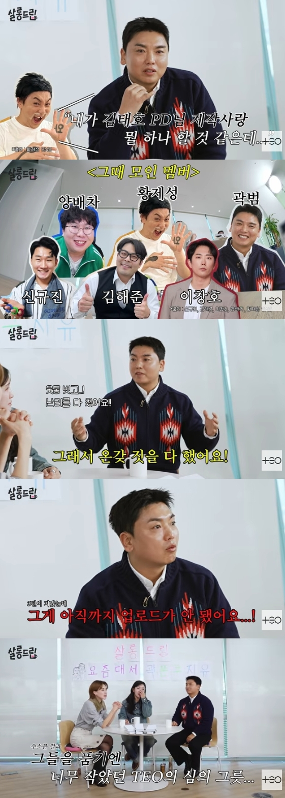 그는 "어느 날 황제성 선배한테 연락이 왔다. 김태오 PD 제작사랑 뭘 하나 할 것 같은데 떠오르는 신예들을 모아서 예능 할 거라고 하더라. 그때 모인 사람이 신규진, 김해준, 이창호, 양배차, 황제성, 저였다"라고 설명해 기대감을 높였다.