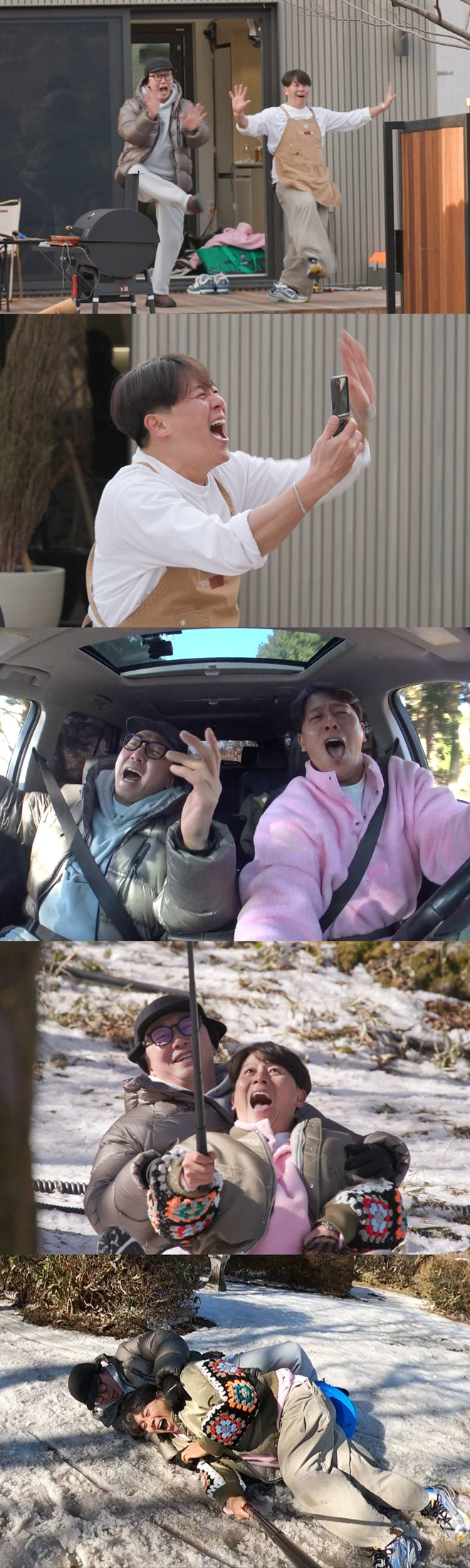 또한 이재훈은 제주도에서 천연 눈썰매를 탈 수 있는 특별한 장소로 탁재훈을 안내했다. 하지만 썰매를 즐기는 것도 잠시, 평소 영상 촬영에 진심인 이재훈은 액션캠까지 동원해 인생샷을 건지겠다며 열정을 불태웠고, 탁재훈은 그의 열정에 못 이겨 결국 폭발하고 말았는데. 그것도 잠시, '도합 나이 110살'인 두 사람은 예상치 못한 역대급 몸개그를 선사하며 스튜디오를 초토화시켰다는 후문이다.