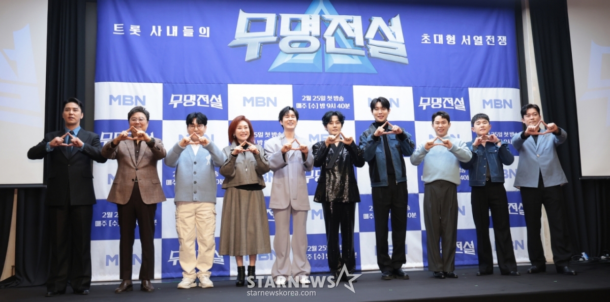 MBN '무명전설'은 25일 오전 11시 서울 상암 스탠포드호텔코리아에서 제작발표회를 진행했다. 현장에는 장민호, 김대호, 남진, 주현미, 조항조, 신유, 강문경, 손태진, 임한별, 양세형, 김우진 PD가 참석했다.