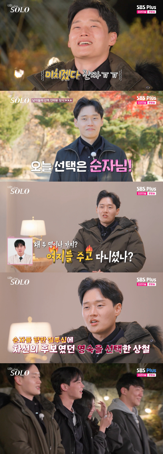 '나는 솔로' 30기 상철이 애초 데이트 상대로 언급한 순자가 아닌 영숙을 택한 이유를 털어놨다.25일 방송된 ENA, SBS플러스 연애 예능 프로그램 '나는 솔로'에서는 30기 출연자들의 밤 데이트 모습이 그려졌다.