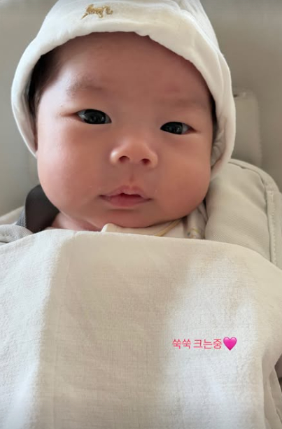 박은영은 3일 둘째 딸의 모습과 함께 "쑥쑥 크는 중. 뽀뽀쟁이 오빠"라는 문구를 덧붙여 공개했다.