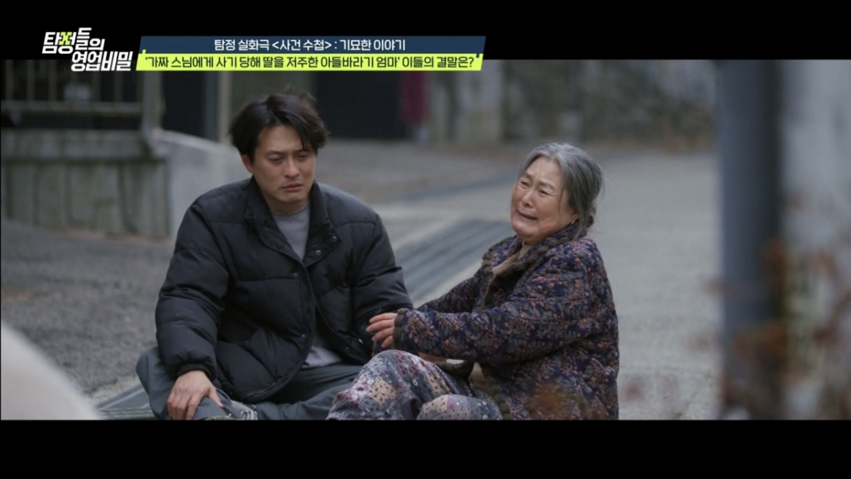 이후 아들에게 여자친구가 생기자 어머니는 스님을 더욱 맹신하게 됐다. 그러나 저주를 부추긴 이는 가짜 스님이었고, 아들의 여자친구는 그의 며느리였다. 가짜 스님은 며느리까지 동원해 노총각 아들을 둔 부모들에게 접근, 돈을 갈취하는 치밀한 사기극을 벌여왔다.그 배경에는 사기죄로 수감 중인 친아들의 변호 비용과 피해 보상금을 마련하려는 목적이 있었다. 모든 진실이 드러난 뒤, 의뢰인은 가족과의 인연을 끊고 가게와 집을 정리한 채 새로운 지역에서 새 출발을 택했다. 데프콘은 "두 분 다 아들 때문에 망했다"며 씁쓸해했고, 박세리는 "어머니의 잘못된 교육이 아들을 저렇게 만든 것"이라고 일침을 가했다.