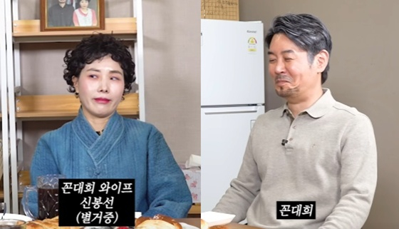 영상에는 김대희와 개그우먼 신봉선, 김대희의 아내 지경선 씨가 한자리에 모여 삼자대면 중인 모습이 담겼다. 이번 영상은 '꼰대희' 200만 구독자 돌파를 기념해 이들의 만남이 이뤄졌다.