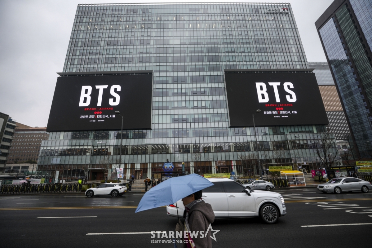 한편 방탄소년단은 오는 20일 오후 1시 3년 9개월 만의 완전체 앨범인 정규 5집 '아리랑'을 발표한다. 방시혁 하이브 의장이 신보의 총괄 프로듀싱을 맡았다. 멤버들은 새 앨범에서 팀의 정체성과 많은 사람이 공감할 수 있는 보편적인 감정을 다뤘다.