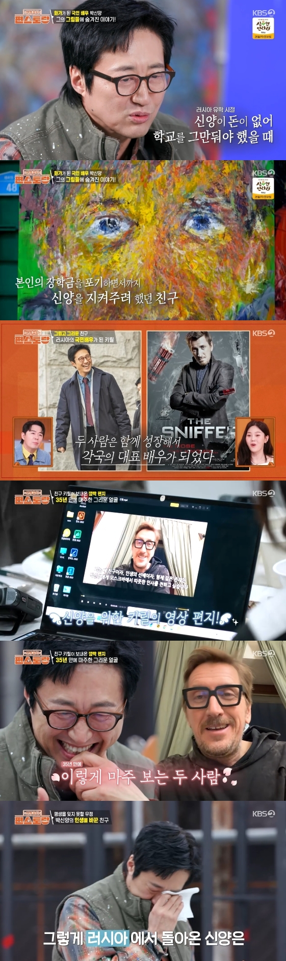 이때 제작진이 키릴에게서 온 깜짝 영상 편지를 공개했고, 유학 시절 이후 처음 듣는 친구의 목소리에 박신양은 놀라움을 감추지 못했다. 키릴은 박신양을 자신의 친구이자 생명의 은인이라고 밝히며 과거 그가 알려줬던 한국 동화의 한 구절을 그대로 외워 모두를 감탄케 했다. 박신양은 러시아 유학 시절 영화에 캐스팅된 후 동고동락한 친구들에게 거짓말로 둘러대며 한국으로 떠나온 과거를 떠올렸다. 박신양은 "키릴이 나를 쫓아왔다. 집에 둘이 있는데 나를 보더니 '신양, 거짓말이지?'하더라. 사실대로 말했더니 '네가 선택한 게 맞다. 이해한다'고 하더라"라며 눈물을 훔쳤다.