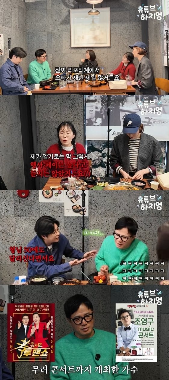방송인 조영구가 행사 몸값에 대해 언급했다. 22일 공개된 유튜브 채널 '유튜브하지영'에는 방송 3사 대표 리포터로 유명한 김태진, 조영구, 박슬기, 김새롬이 게스트로 출연했다.