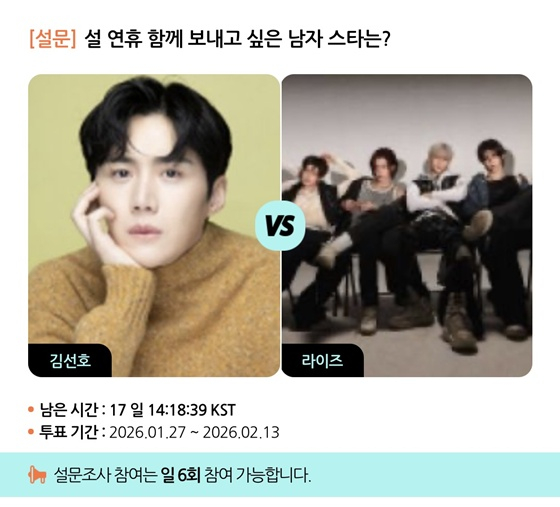 Learn more김선호vs변우석, 설 연휴 함께 보내고 싶은 男스타는? [스타폴]