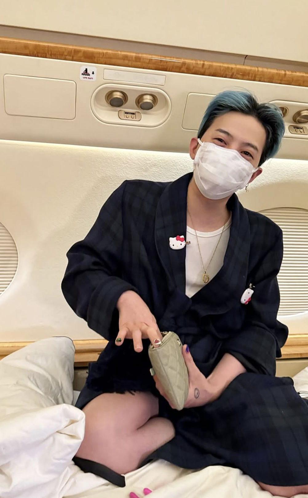 이외에도 지드래곤은 전세기 안에서 여유로운 일상을 즐기는 모습을 공유했다. 샴페인 잔을 들고 미소 짓는가 하면, 호텔급 전용 침대에서 편안히 휴식을 취하는 장면도 포착됐다.