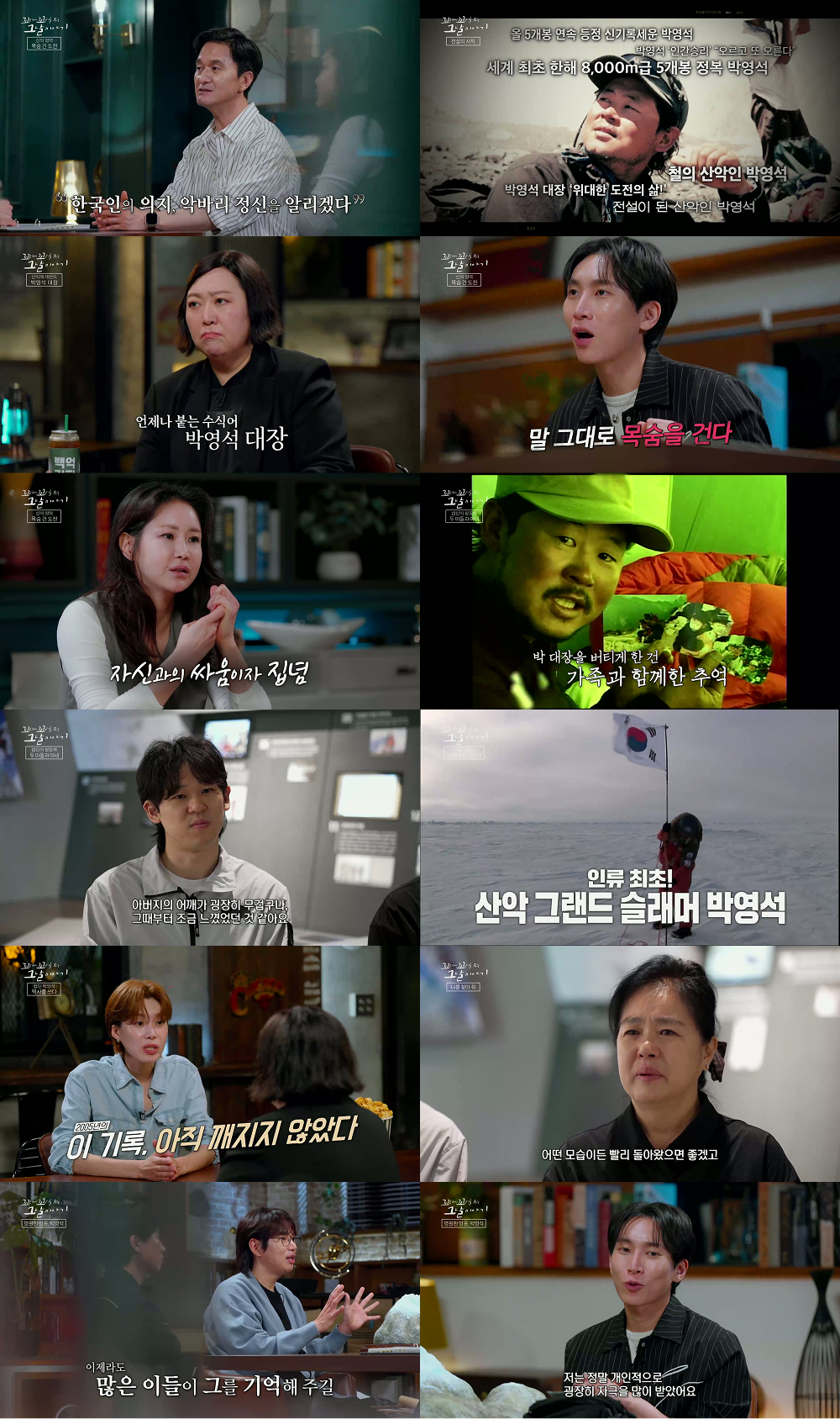 그는 수차례 죽음과 맞닿았다. 히든 크레바스에 빠졌다가 침낭이 그 틈에 걸려 가까스로 살아났고, 추락으로 피부가 10cm 찢어지는 부상을 입고도 마취 없이 생살을 꿰매야 했다. 그럼에도 그는 "최고의 산악인, 탐험가가 되겠다는 꿈 하나로 지금까지 버텼다. 그것이 나의 꿈이다"라고 고백했다. 이에 박준면은 "경이롭다"고 감탄했고, 서은광은 "나도 꿈을 좇는 삶을 살고 싶다. 멋있다"며 뭉클함을 전했다.